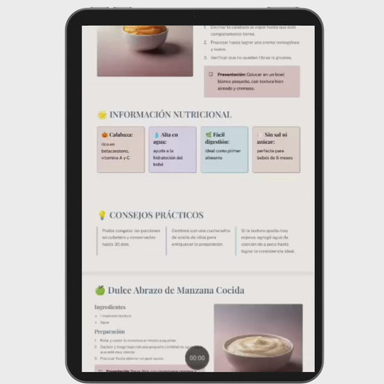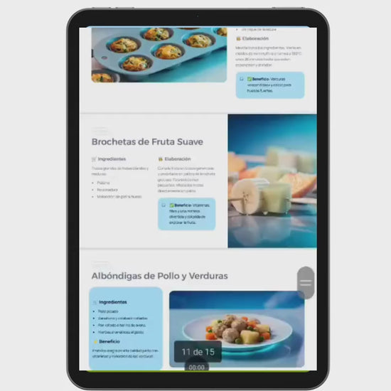 El recetario está pensado para bebés desde los 6 meses hasta niños de más de 2 años. Incluye recetas adaptables según la etapa de alimentación.