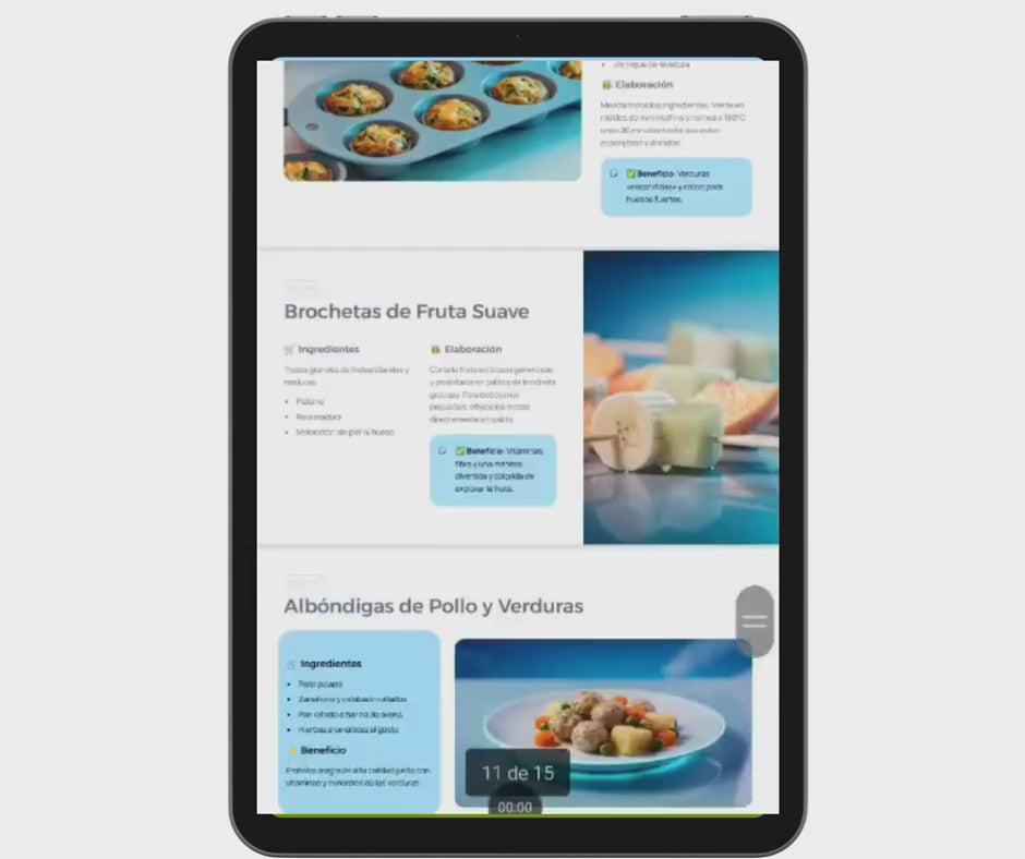 “Antes terminaba comprando comida preparada porque no tenía tiempo. Con estas recetas ahora puedo cocinarle a mi bebé algo sano en menos de 15 minutos.”