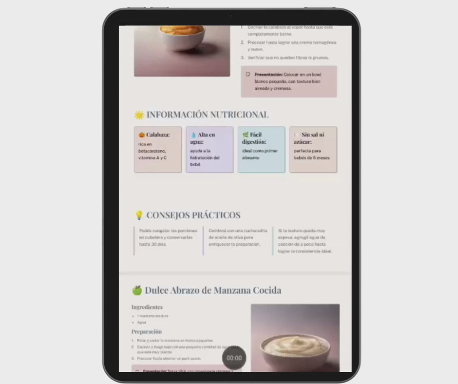 “Las recetas son simples y con ingredientes que ya tenía en casa. Me salvó en esos días donde todo es correr y aún así quiero que mi bebé coma bien.”